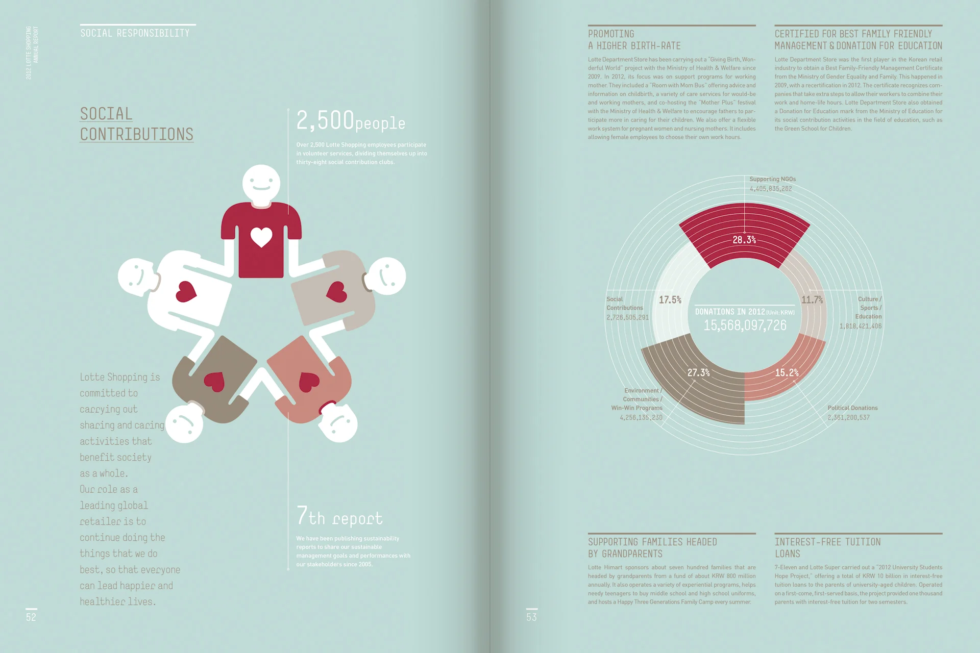 2012년과 연결되는 아이덴티티의 확장성을 지니고 있으며 페이지별로 연속되는 원형 톰슨을 통해 사업의 다양성,